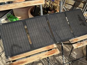Meine neueste und derzeit bevorzugte mobile Photovoltaik-Ausstattung besteht aus einem faltbaren 40W Solarpanel mit USB-A, USB-C und DC-Ausgang. Dieses Solar-Ladegerät eignet sich für Power Stations, Smartphones, Laptops beim Camping, Wandern, Reisen und ähnlichen Abenteuern. Ich habe es bei Amazon.de gekauft. Es hat keinen Markennamen und stammt aus China. Auf der Verpackung stand 40W Outdoor Foldable Solar Panel, Modell: YXN-SP-L40W.